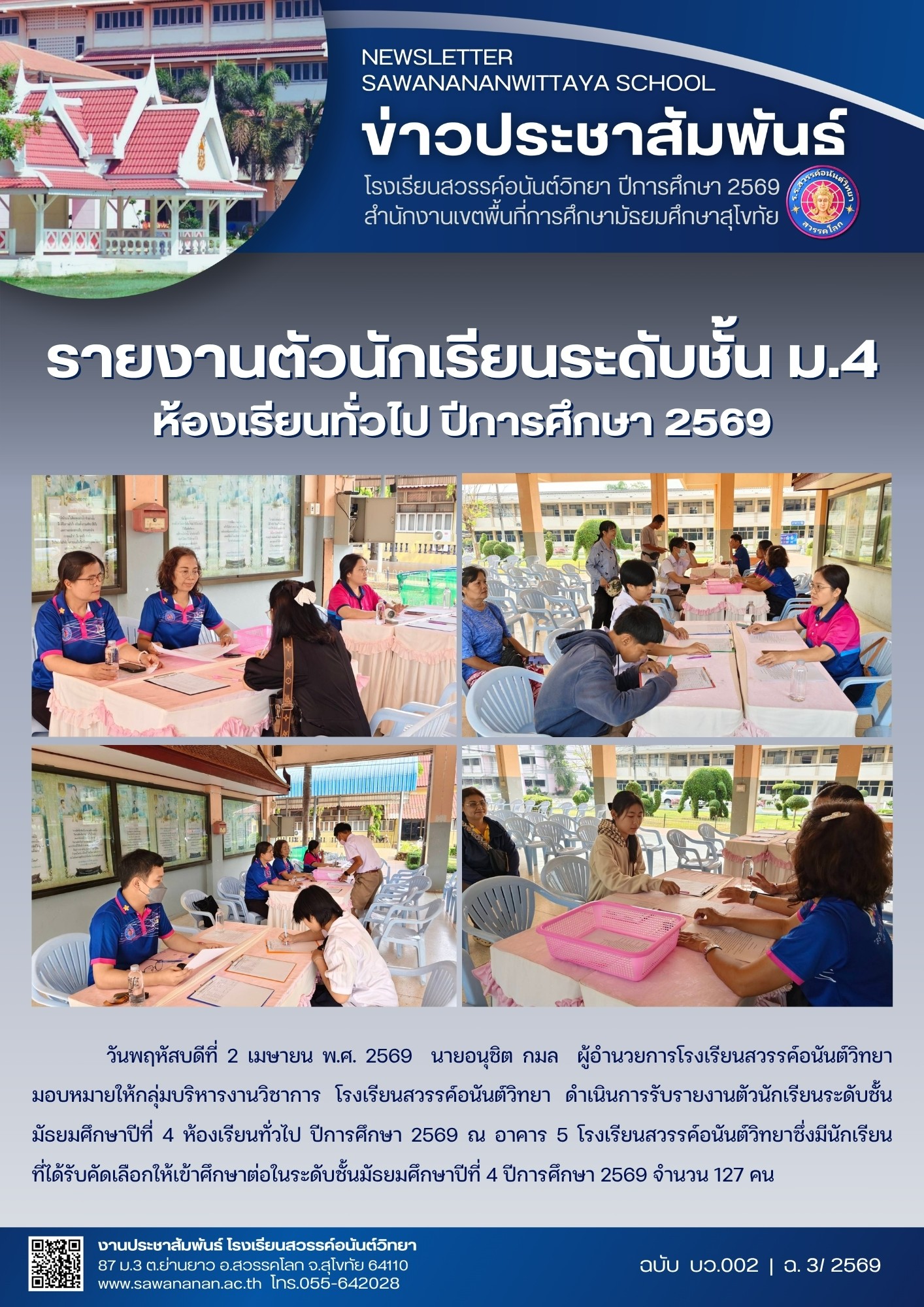 ประกาศผลสอบนักเรียน ชั้น ม.4 ปีการศึกษา 2568