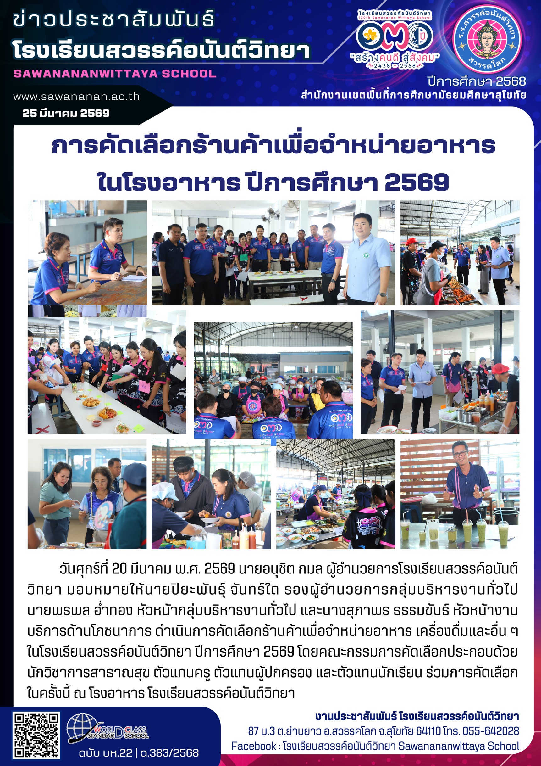 ประกาศการเปิดประมูลผู้ประกอบการร้านค้าสวัสดิการโรงเรียนสวรรค์อนันต์วิทยา ประจำปี 2569